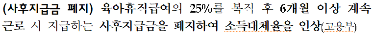 육아휴직 수당, 급여 관련 대책 부분이
